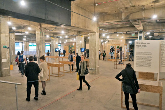 The exhibition space is off-site from ICA at the The Old Selfridges Hotel in an industrial, raw space above the Selfridges Food Hall. It is as striking a contrast compared to Selfridges as a subculture theme should be.