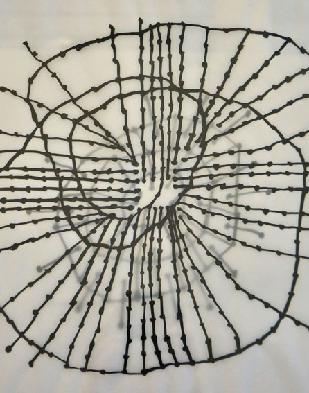 What makes the exhibition interesting is not only the unusual mark making, but the techniques and processes that many artists have invented to arrive to the end results.